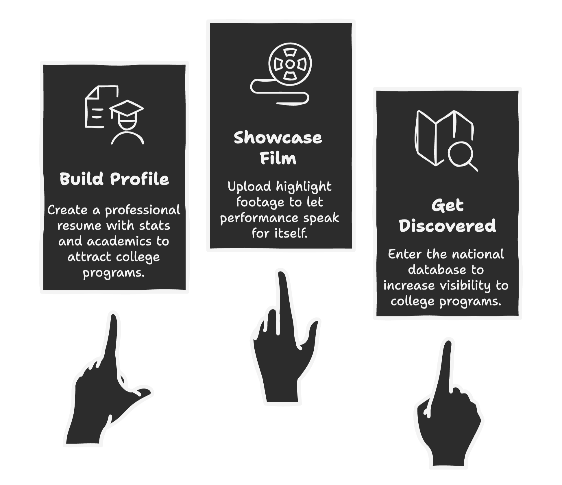Your profile enters our national AI powered database, making you visible to college programs actively searching for players like you.